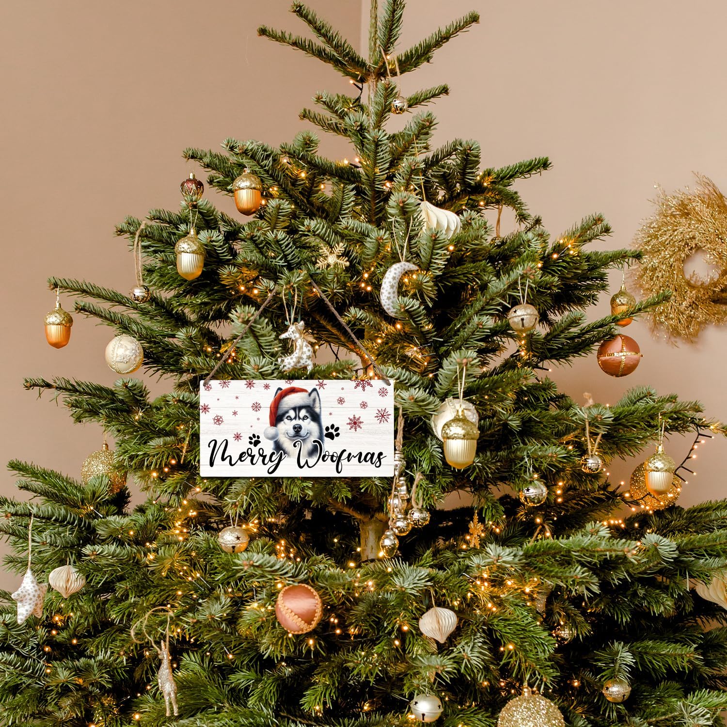 JXREQ Christmas Door Sign, Merry Christmas Sign, Husky Dog Christmas Signs, Christmas Dog Front Door Decorations, Christmas Door Hanger, Christmas Wall Decor, Dog Mom Gifts, 12x6 Inch